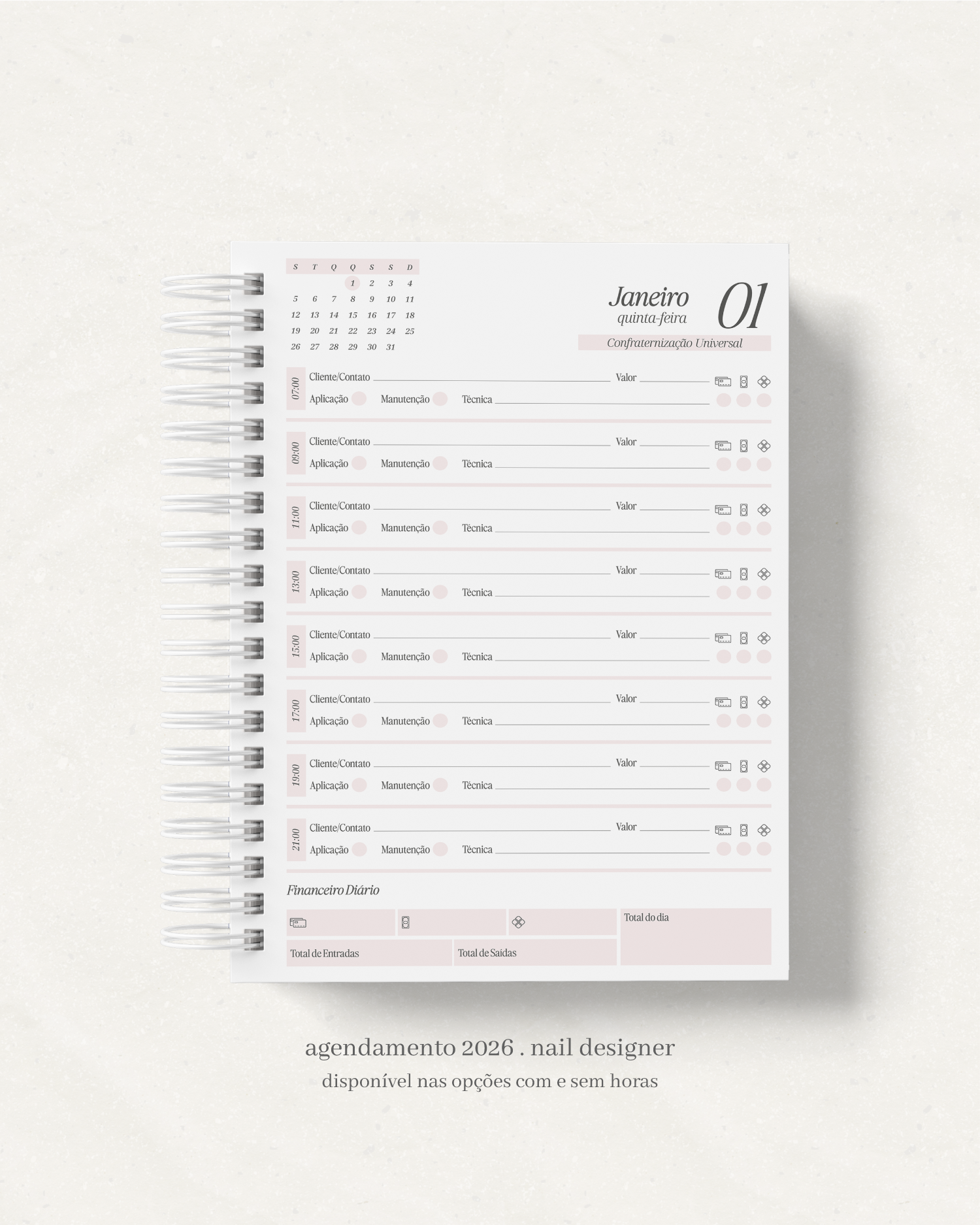 💅 Uma agenda linda, funcional e feita com todo o carinho do nosso ateliê — pra te ajudar a organizar atendimentos, cuidar das finanças e viver um 2026 de muito sucesso e criatividade.