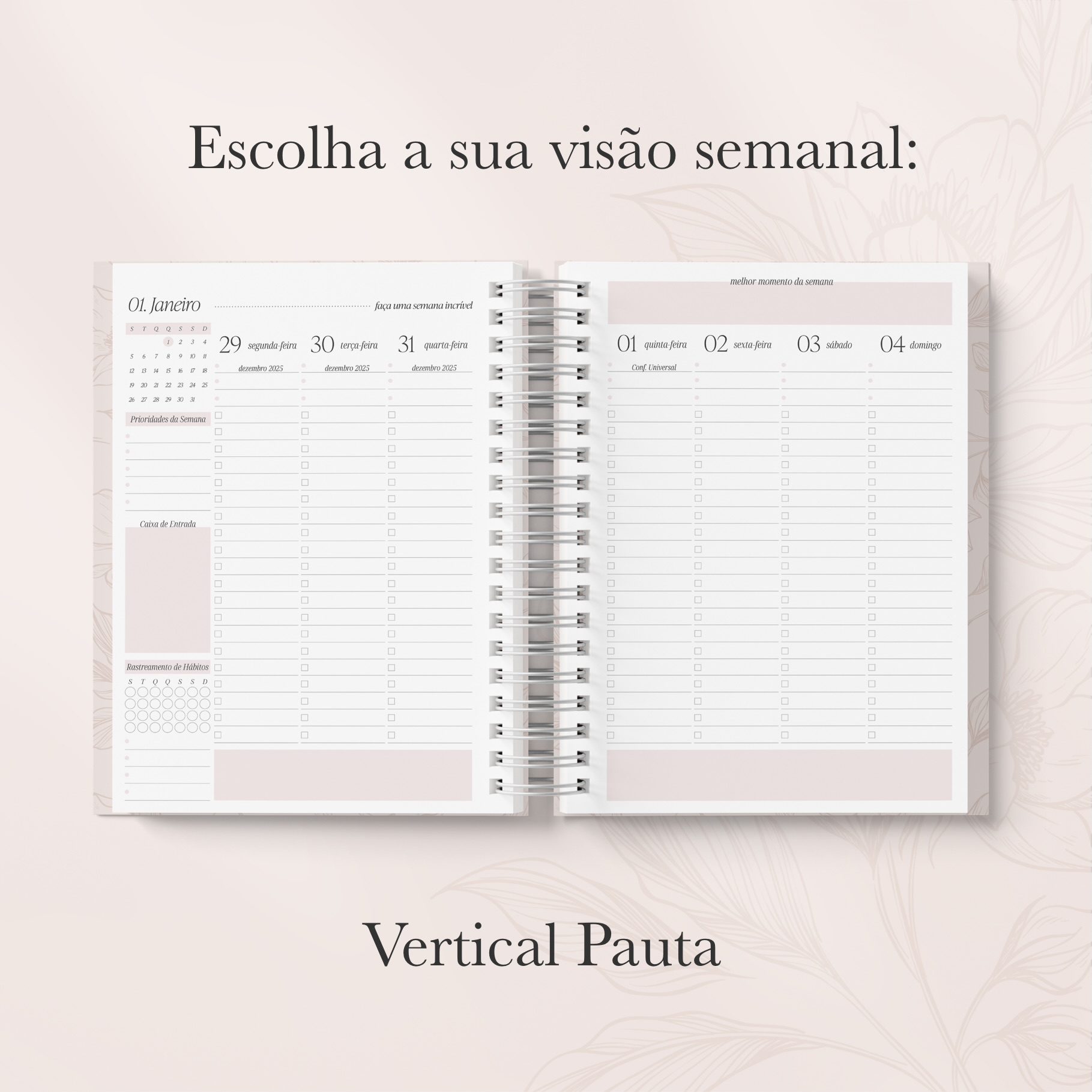 O Planner 2026 Personalizado foi criado pra te acompanhar em um novo ciclo — com leveza, propósito e tudo que você precisa pra transformar seus planos em realizações. 🌷 Mais do que um planner, ele é um espaço pra sonhar, organizar e celebrar cada conquista do seu ano.