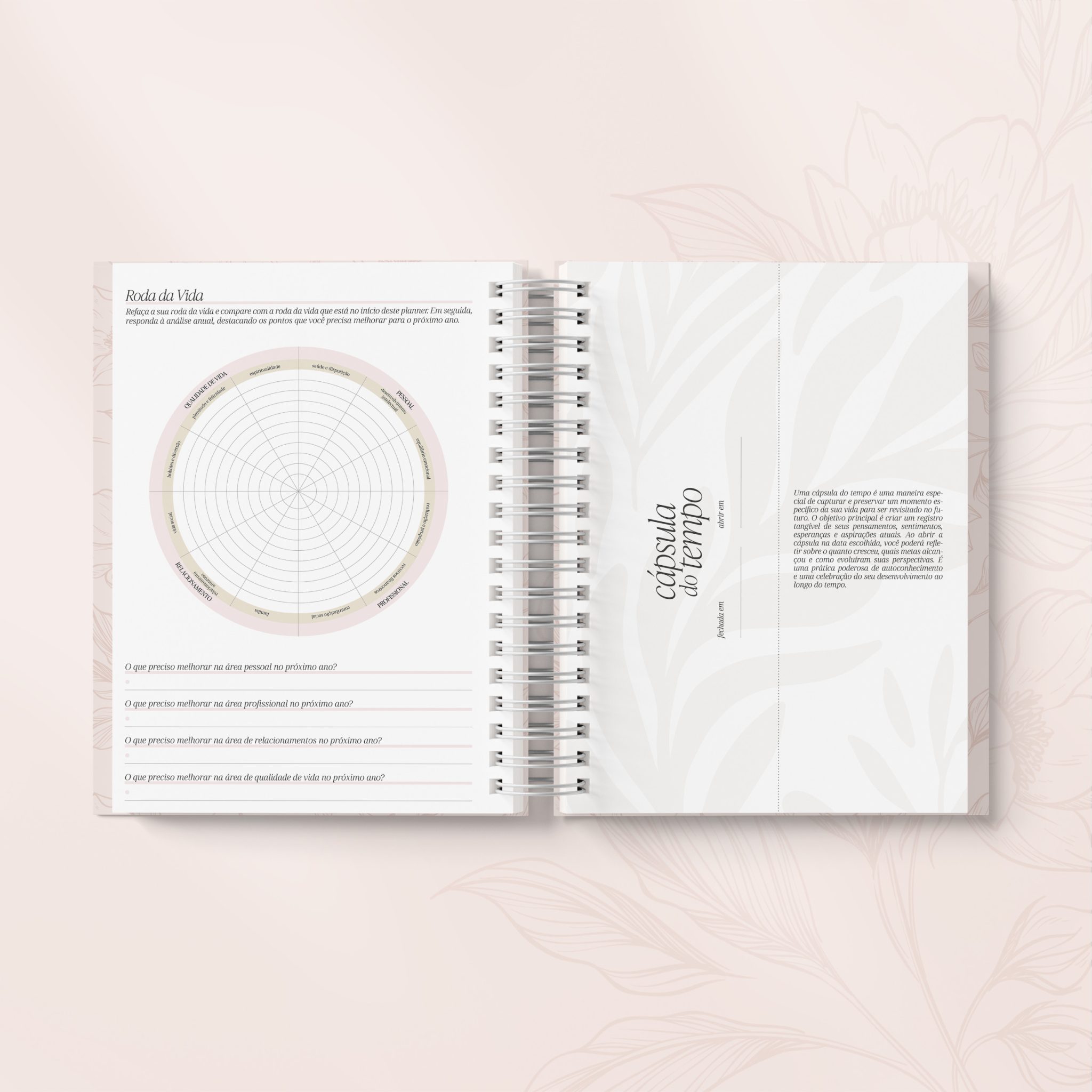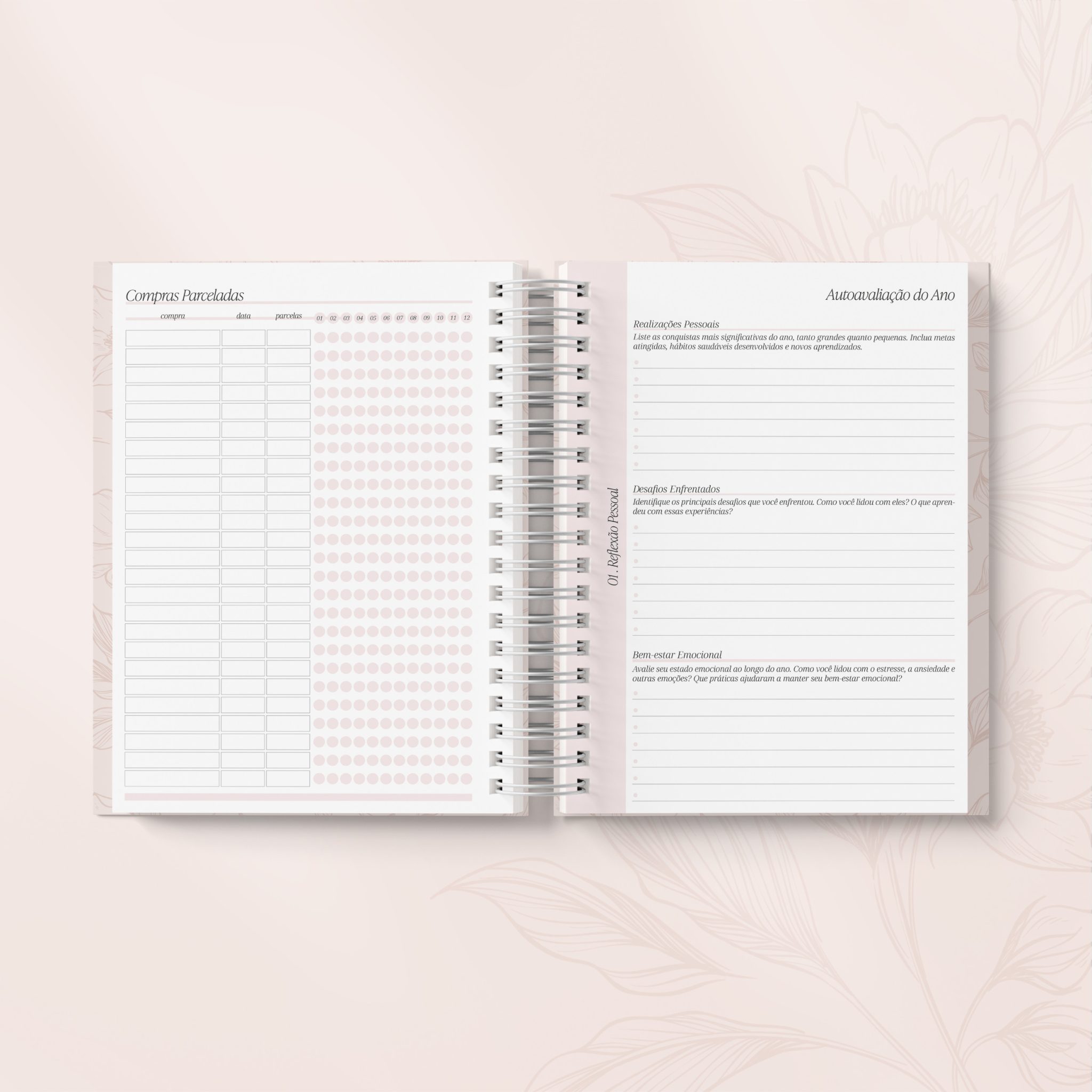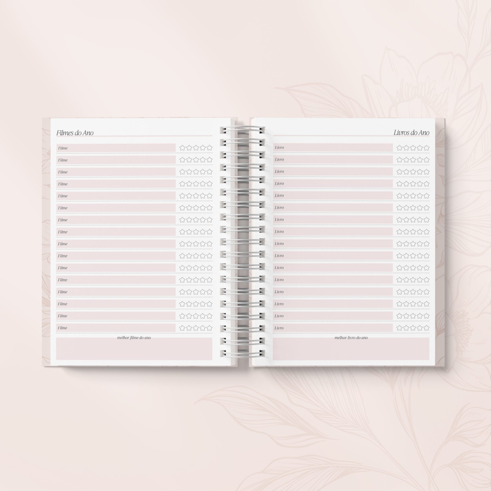 Seu conteúdo foi cuidadosamente planejado pra equilibrar organização prática e autoconhecimento, com seções que te ajudam a planejar, refletir e acompanhar o seu progresso ao longo do ano.