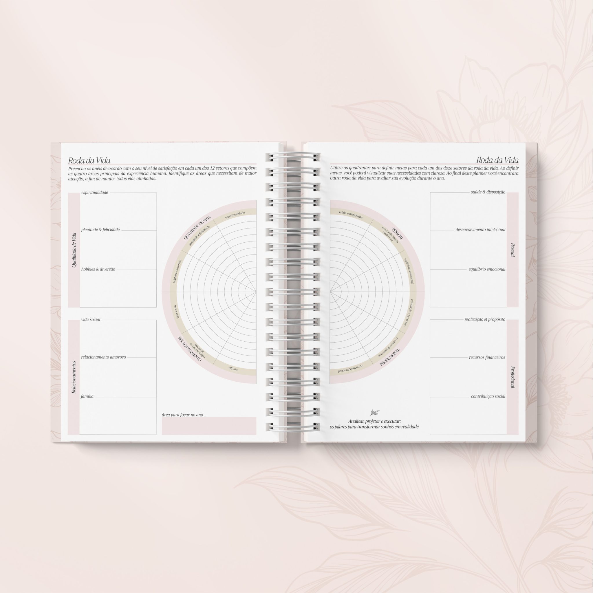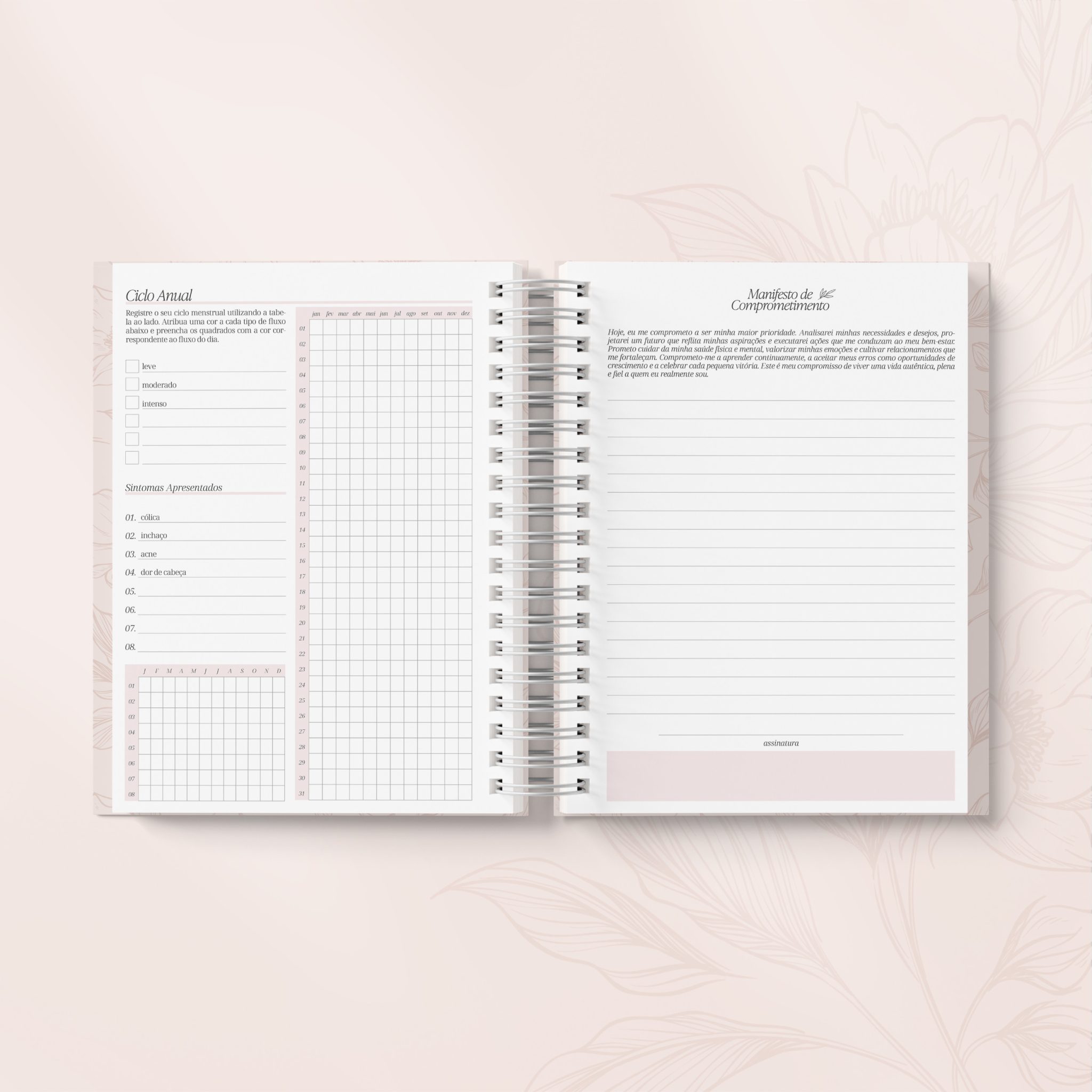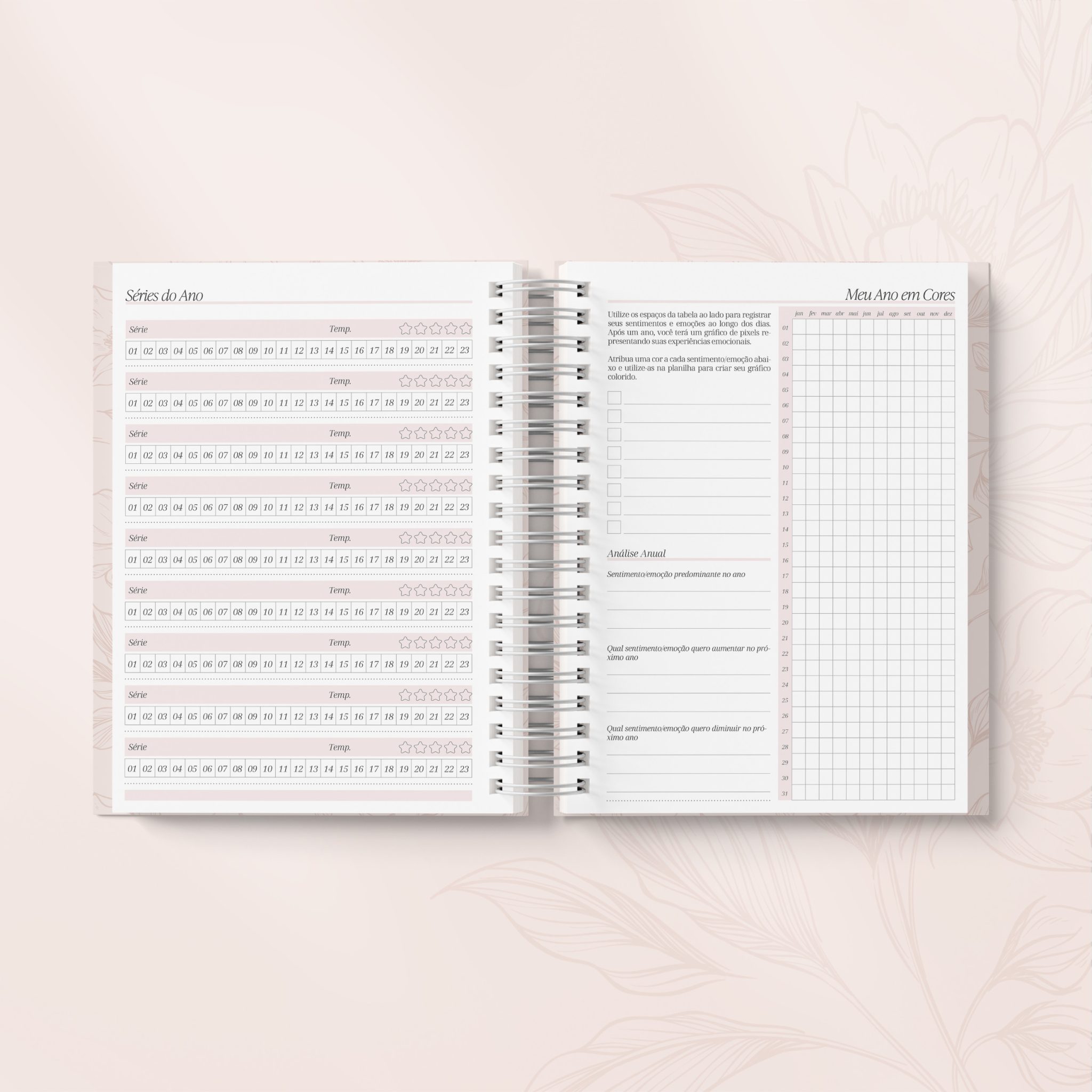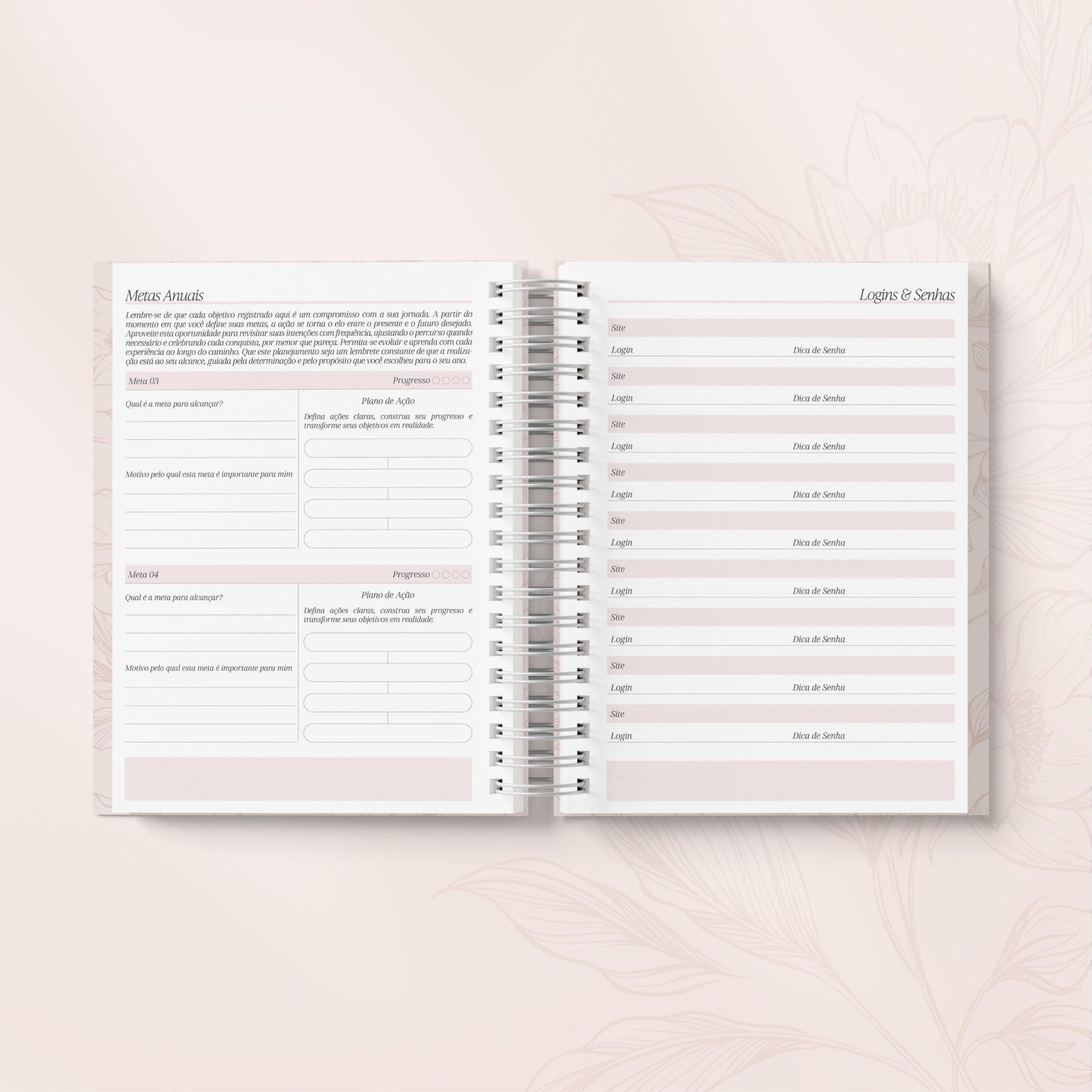Seu conteúdo foi cuidadosamente planejado pra equilibrar organização prática e autoconhecimento, com seções que te ajudam a planejar, refletir e acompanhar o seu progresso ao longo do ano.